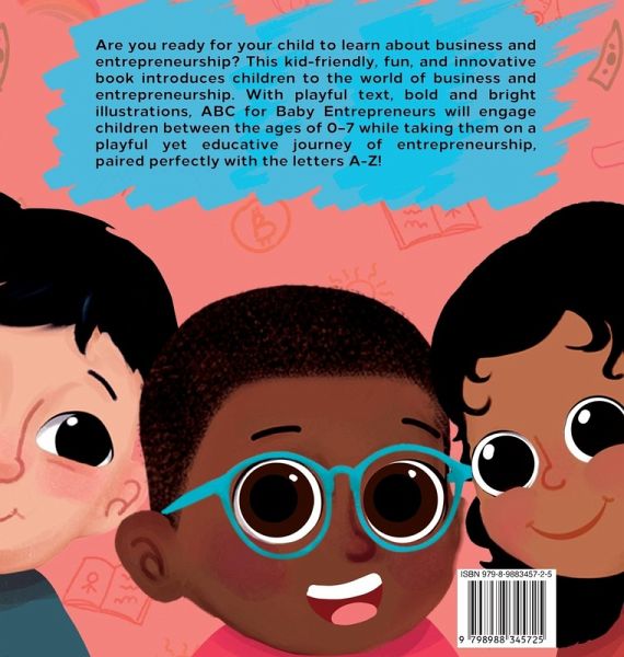 Are you ready for your child to learn about business and entrepreneurship? This kid-friendly, fun, and innovative book introduces children to the world of business and entrepreneurship. With playful text, bold and bright illustrations, ABC for Baby Entrepreneurs will engage children between the ages of 0-7 while taking them on a playful yet educative journey of entrepreneurship, paired perfectly with the letters A-Z!