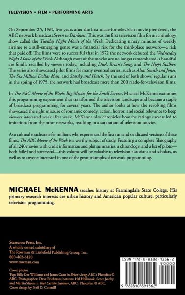 This book looks at the cultural impact of the ABC Movie of the Week, the first weekly movies series made for television, which began in 1969 and ran for six years. Films that debuted on the program include Brian's Song, That Certain Summer, The Night Stalker, Trilogy of Terror, Go Ask Alice, The Six Million Dollar Man, and Don't Be Afraid of the Dark (remade as a 2011 feature film).