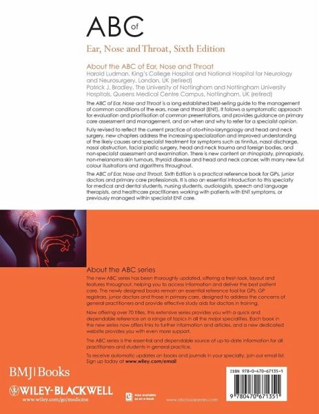 ABC of Ear, Nose and Throat is a long established best-selling guide to the management of common conditions of the Ears, Nose and Throat. It follows a symptomatic approach for evaluation and prioritisation of common presentations, and provides guidance on primary care assessment and management, and on when and why to refer for a specialist opinion.