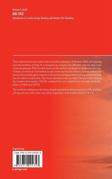 This textbook armsthe reader with powerful techniques of Modern TRIZ self-training andreal problem solving. It is designed as a simple and efficient, step-by-step crash course in primary TRIZ models based on the author's methods of extraction and reinvention, or retrieval of invention models from any real-life objects. Special content addresses the psychological support of the person during problem solving andpromotion of the new idea to realization. The book introduces the so-calledTheory of Developing the Creative Personality (TDCP), initiated but notcompleted by Genrikh Altshuller, father of TRIZ and TDCP. The textbook continues to develop a simple standard model presentation of the problem solving process with a four-step Meta-Algorithm of Invention (MAI) T-R-I-Z.