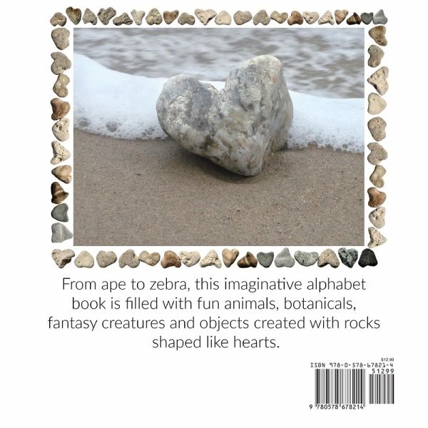 ABC: a heart rock alphabet is an imaginative and charming book with prints of animals, fantasy creatures and objects collaged from heart-shaped rocks, in an ABC format. The book's art inspires one to get out for a walk to collect from nature. Suitable for children and adults alike. It fosters a love of nature and teaches the alphabet with clever images. Kids can learn their uppercase and lowercase ABCs with the accompaniment of fun artwork. Each page is devoted to a letter of the alphabet and pictures drawn with heart-shaped rocks to depict animals and objects starting with that letter of the alphabet. Adults will love the visual uniqueness of this alphabetical tour. This is a perfect fit for younger children just learning the alphabet. In this book, readers will find an ABC that's unlike any other. Here is a great gift for a new baby or a crafty friend! ABOUT THE AUTHOR Jane Pollio lives in beautiful New Hampshire. She has collected rocks in the shape of hearts for more than 13 years. She is inspired by natural treasures found on her daily walks along the beach, in the woods, along rivers and streams or simply around the neighborhood. Her debut book is a collection of animals and objects collaged with heart rocks in an ABC format. The goal of this book, other than little ones learning their ABC's, is to inspire trying a fun and relaxing art form that connects you to nature. People of all ages will be fascinated by her amazing creations, from an ape to zebra.
