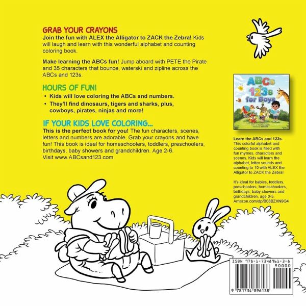 Wow! A FUN and EASY coloring book for toddlers and preschoolers with JUMBO art! Join Alex the Alligator to Zack the Zebra! The adorable coloring activity book introduces the alphabet, counting, letter sounds, animals, letters and number shapes.