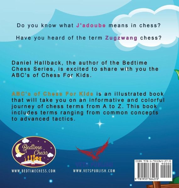 The ABC's of Chess for Kids takes readers on a journey from the letter A to the letter Z of chess terms. The terms cover some of the basic principles of chess, such as assembling the board. It also teaches chess notation and which help readers to learn how to study other chess books. This amazing ABC's book also includes some of the more advanced features, such as Zugzwang.
