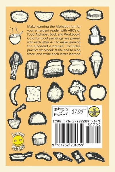 Make learning the Alphabet fun for your emergent reader with ABC's of Food Alphabet Book and Workbook! Colorful food paintings are paired with each letter A-Z to make learning the alphabet a breeze! Includes workbook to reinforce letter learning. Great for preschoolers, kindergarteners, and emerging readers. This pocket-sized edition is the perfect size for kids and works well read in front of a class or individual. ABC's of Food Alphabet Book Workbook has been Teacher Tested and Kid Approved!