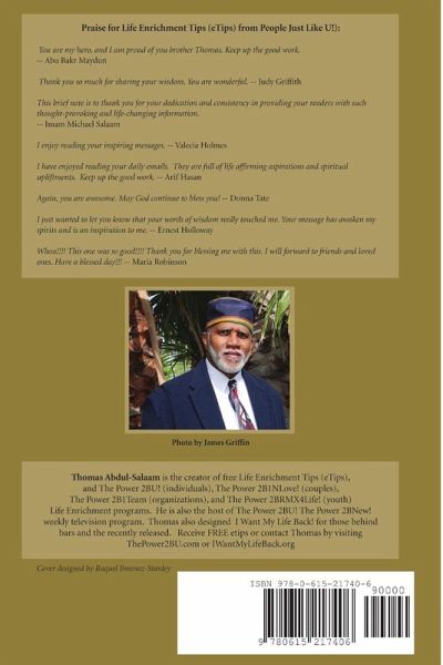 The ABCs of Life Enrichment provides a broad range of personal empowerment, strategies that will help U Discover, Dream, and Design your Destiny. The Power 2BU! provides readers with insight needed to elevate beyond self-imposed limitations. This book, The ABCs of Life Enrichment, offers very real and practical tips on how 2BU! Regardless of your present day situation or circumstances which have brought U to where U are, The Power 2BU! gives U a head start to help identify those conditions which block personal growth. Thomas has effectively integrated his knowledge and experience as a motivator, coach and spiritual leader in a thought provoking manner that will inspire readers of all ages to achieve higher levels of consciousness, self-awareness and The Power 2BU! -- John Carvana, Career & Life Coach, www.DiscoveredPurpose.com