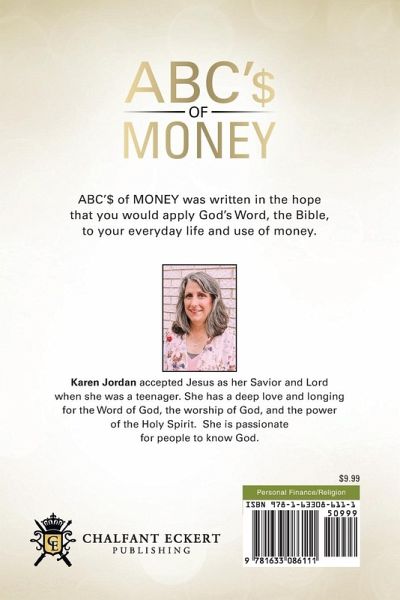 ABC'$ of MONEY was written in the hope that you would apply God's Word, the Bible, to your everyday life and use of money. In today's world, money speaks, and money is needed to survive. God knows we need money to make it, and He has provided truths from the Bible (His Word) for us to read, process, learn, believe, and live.