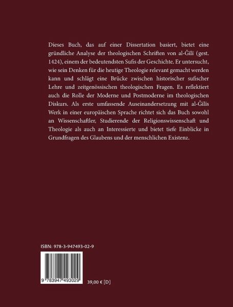 Dieses Buch, das auf einer Dissertation basiert, bietet eine gründliche Analyse der theologischen Schriften von al-Gili (gest. 1424), einem der bedeutendsten Sufis der Geschichte. Er untersucht, wie sein Denken für die heutige Theologie relevant gemacht werden kann und schlägt eine Brücke zwischen historischer sufischer Lehre und zeitgenössischen theologischen Fragen. Es reflektiert auch die Rolle der Moderne und Postmoderne im theologischen Diskurs. Als erste umfassende Auseinandersetzung mit al-Gilis Werk in einer europäischen Sprache richtet sich das Buch sowohl an Wissenschaftler, Studierende der Religionswissenschaft und Theologie als auch an Interessierte und bietet tiefe Einblicke in Grundfragen des Glaubens und der menschlichen Existenz.