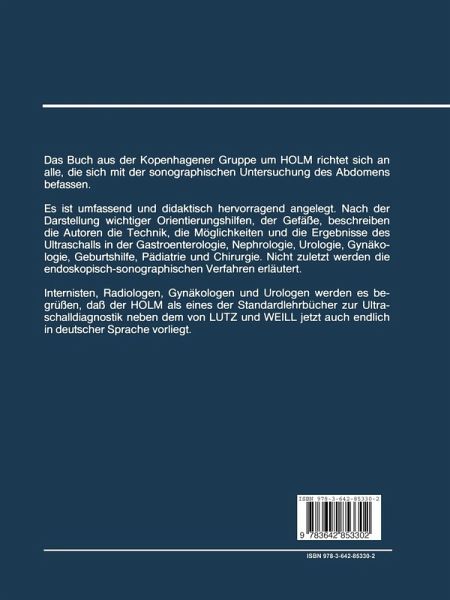 1. Allgemeines.- Organisation des Ultraschall-Labors.- Patientenbezogene Faktoren.- Das diagnostische Problem.- Ultraschalluntersuchung.- Bildaufzeichnung.- Übermittlung der Ergebnisse.- Literatur zu Kapitel 1.- 2. Schnittbildanatomie.- 3. Gefäße.- Anatomie.- Untersuchungstechnik.- Aorta abdominalis.- Normale Gefäße.- Erkrankungen der Gefäße.- Literatur zu Kapitel 3.- 4. Leber.- Anatomie.- Untersuchungsmethode.- Normale Leber.- Diffuse Lebererkrankungen.- Fokale Lebererkrankungen.- Lebertrauma.- Literatur zu Kapitel 4.- 5. Gallensystem.- Anatomie.- Untersuchungsmethode.- Normales Gallensystem.- Erkrankungen der Gallenwege.- Literatur zu Kapitel 5.- 6. Pankreas.- Anatomie.- Untersuchungsmethode.- Normales Pankreas.- Entzündliche Erkrankungen.- Raumforderungen des Pankreas.- Literatur zu Kapitel 6.- 7. Milz.- Anatomie.- Untersuchungsmethode.- Normale Milz.- Erkrankungen der Milz.- Literatur zu Kapitel 7.- 8. Nieren.- Anatomie.- Untersuchungsmethode.- Normale Nieren.- Angeborene Anomalien.- Diffuse Nierenerkrankungen.- Renale Raumforderungen.- Nierentrauma.- Transplantatniere.- Literatur zu Kapitel 8.- 9. Retroperitoneum und Nebennieren.- Anatomie.- Untersuchungsverfahren.- Normales Retroperitoneum und Nebennieren.- Erkrankungen des Retroperito-neums und der Nebennieren.- Literatur zu Kapitel 9.- 10. Gastrointestinaltrakt.- Anatomie.- Untersuchungsmethode.- Der normale Gastrointestinaltrakt.- Erkrankungen des Magen-Darm-Traktes.- Literatur zu Kapitel 10.- 11. Harnblase, Prostata und periprostatische Strukturen.- Anatomie.- Untersuchungsmethode.- Normale Blase und Prostata.- Erkrankungen.- Literatur zu Kapitel 11.- 12. Weibliche Geschlechtsorgane.- Anatomie.- Untersuchungsmethode.- Normale weibliche Geschlechtsorgane.- Erkrankungen der weiblichen Geschlechtsorgane.-Literatur zu Kapitel 12.- 13. Schwangerschaft.- Anatomie.- Untersuchungsmethode.- Normale Schwangerschaft.- Anomaler oder pathologischer Verlauf der Schwangerschaft.- Literatur zu Kapitel 13.- 14. Abszesse, Hämatome, Ascites und andere Flüssigkeitsansammlungen.- Anatomie.- Untersuchungsmethode.- Freie intraperitoneale Flüssigkeit.- Lokalisierte Flüssigkeitsansammlungen.- Literatur zu Kapitel 14.- 15. Abdominaler Ultraschall in der Pädiatrie.- Untersuchungsverfahren.- Nieren.- Abdominale Raumforderung.- Leber, Gallenwege, Milz und Pankreas.- Abdominale Abszesse.- Literatur zu Kapitel 15.- 16. Sonographisch gesteuerte Punktion.- Ausrüstung und Verfahren.- Punktionsnadeln und Punktionstechnik.- Punktionsstellen.- Komplikationen.- Literatur zu Kapitel 16.- 17. Volumenbestimmung.- Volumenbestimmung nach Diametermessungen.- Volumenbestimmung durch ParallelScans.- Bestimmung des Lebervolumens durch angulierte Schnitte.- Literatur zu Kapitel 17.- 18. Anatomische und technische Ursachen für Fehlinterpretationen.- Grenzen der sonographischen Darstellbarkeit und Artefakte.- Fehldiagnosen durch falsche Interpretation der Bilder.- Literatur zu Kapitel 18.- 19. Indikationen zur sonographischen Untersuchung des Abdomens.- Tastbare Raumforderungen unter dem rechten Rippenbogen.- Raumforderung unter dem linken Rippenbogen.- Pulsierende abdominale Raumforderungen.- Raumforderungen des Beckens.- Vergrößertes Abdomen.- Akutes Abdomen.- Ikterus.- Intraabdominale Abszesse.- Anurie.- Hämaturie.- Stumme Niere.- Negatives Cholezystogramm.- Abdominales Trauma.- Tumorverdacht.- Metastasen.- Lokalrezidiv.- 20. Ultraschall und Computertomographie.- Verfügbarkeit der Untersuchung.- Kosten der Untersuchung.- Strahlung.- Qualität der Untersuchung.- Darstellbare Areale.- Eignung desPatienten.- Biopsie.- Zukünftige Entwicklungen.- Indikation für Computertomographie und Ultraschalluntersuchung des Abdomens.- Literatur zu Kapitel 20.- Sachwortverzeichnis.