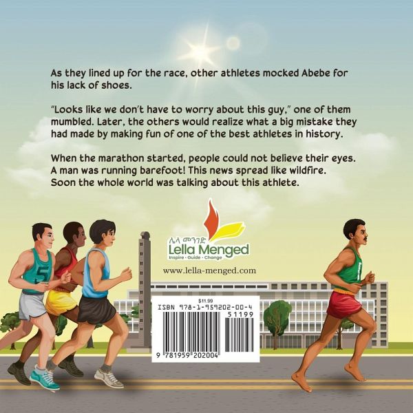 This children's picture book tells the true story of one of the greatest athletes in history, Abebe Bikila. Abebe Bikila was an Ethiopian athlete who won the 1960 Olympic marathon in Rome, Italy running barefoot. He was the first African athlete to win a gold medal in the Olympics. He was also the first athlete to win two Olympic marathons after winning the 1964 Olympic marathon in Japan. In both competitions, Abebe broke the world record. He competed in fifteen marathons, out of which he won twelve. This children's picture book hopes to inspire kids worldwide by telling Bikila's fantastic story of perseverance and determination.