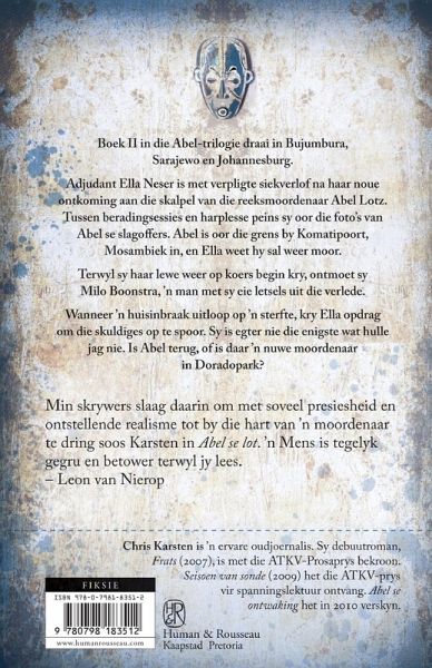 Die bloedstollende opvolg op Abel se ontwaking Wanneer 'n inbraak uitloop op 'n sterfgeval, moet Ella Neser die skuldiges aan die pen te laat ry. Sy is egter nie die enigste een op hulle spoor nie. Is Abel Lotz terug, of is daar 'n nuwe moordenaar in Doradopark?