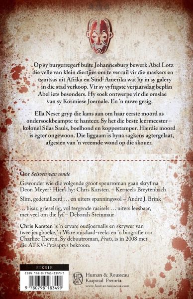 Op sy erf buite Johannesburg bewerk Abel Lotz die velle van klein diertjies om te verruil vir die maskers en tsantsas uit Afrika en Suid-Amerika wat hy in sy galery in die stad verkoop. Vir sy vyftigste verjaarsdag beplan Abel iets besonders. Hy soek 'n nuwe gesig: dié van 'n mooi jong vrou. Ella Neser gryp se eerste moord as ondersoekbeampte.