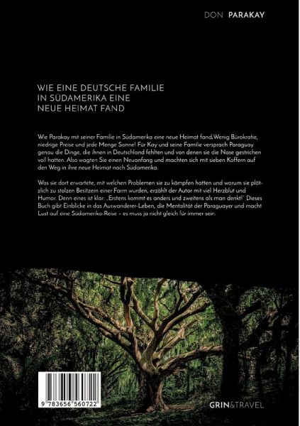 Wenig Bürokratie, niedrige Preise und jede Menge Sonne! Für Kay und seine Familie versprach Paraguay genau die Dinge, die ihnen in Deutschland fehlten und von denen sie die Nase gestrichen voll hatten. Also wagten sie einen Neuanfang und machten sich mit sieben Koffern auf den Weg in ihre neue Heimat nach Südamerika. Was sie dort erwartete, mit welchen Problemen sie zu kämpfen hatten und warum sie plötzlich zu stolzen Besitzern einer Farm wurden, erzählt der Autor Don Parakay mit viel Herzblut und Humor. Denn eines ist klar: "Erstens kommt es anders und zweitens als man denkt!" Dieses Buch gibt Einblicke in das Auswanderer-Leben, die Mentalität der Paraguayer und macht Lust auf eine Südamerika-Reise - es muss ja nicht gleich für immer sein.
