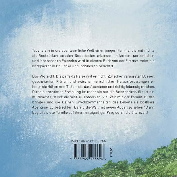 Tauche ein in die abenteuerliche Welt einer jungen Familie, die mit nichts als Rucksäcken beladen Südostasien erkundet! In kurzen, persönlichen und lebensnahen Episoden wird in diesem Buch von der Elternzeitreise als Backpacker in Sri Lanka und Indonesien berichtet. Doch Vorsicht: Die perfekte Reise gibt es nicht! Zwischen verpassten Bussen, gescheiterten Plänen und zwischenmenschlichen Herausforderungen erleben sie Höhen und Tiefen, die das Abenteuer erst richtig lebendig machen. Diese authentische Erzählung ist mehr als nur ein Reisebericht. Sie ist ein Mutmacher, selbst die Welt zu entdecken, viel Zeit mit der Familie zu verbringen und die kleinen Unvollkommenheiten des Lebens als kostbare Abenteuer zu betrachten. Bereit, die Welt mit neuen Augen zu sehen? Dann begleite diese Familie auf ihrem einzigartigen Weg durch die Elternzeit! "Nun kommen wir also doch gleich am ersten Tag noch in den Genuss der Umsetzung eines großen Wunsches von Michel: Wir fahren Tuktuk. Was für ein Ritt! Das Gefährt ist mit den Rucksäcken eigentlich schon gut gefüllt. Dann kommen noch wir vier dazu, und der Fahrer kutschiert uns in völliger Seelenruhe durch den für mich absolut willkürlich erscheinenden Verkehr, während Michel und Edda jedes Mal, wenn sie ein Tuktuk sehen, dem Fahrer eben dieses Wort direkt ins Ohr brüllen."