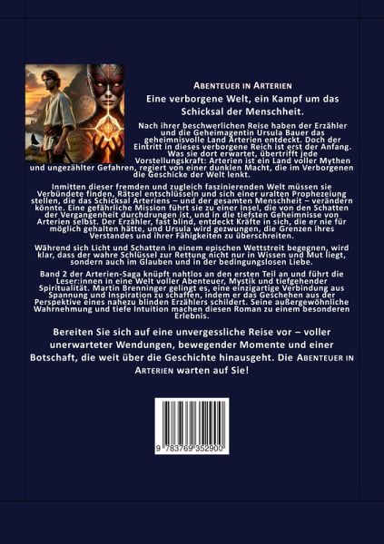 Arterien - Abenteuer in Arterien Eine verborgene Welt, ein Kampf um das Schicksal der Menschheit. Nach ihrer beschwerlichen Reise haben der Erzähler und die Geheimagentin Ursula Bauer das geheimnisvolle Land Arterien entdeckt. Doch der Eintritt in dieses verborgene Reich ist erst der Anfang. Was sie dort erwartet, übertrifft jede Vorstellungskraft: Arterien ist ein Land voller Mythen und ungezählter Gefahren, regiert von einer dunklen Macht, die im Verborgenen die Geschicke der Welt lenkt. Inmitten dieser fremden und zugleich faszinierenden Welt müssen sie Verbündete finden, Rätsel entschlüsseln und sich einer uralten Prophezeiung stellen, die das Schicksal Arteriens - und der gesamten Menschheit - verändern könnte. Eine gefährliche Mission führt sie zu einer Insel, die von den Schatten der Vergangenheit durchdrungen ist, und in die tiefsten Geheimnisse von Arterien selbst. Der Erzähler, fast blind, entdeckt Kräfte in sich, die er nie für möglich gehalten hätte, und Ursula wird gezwungen, die Grenzen ihres Verstandes und ihrer Fähigkeiten zu überschreiten. Während sich Licht und Schatten in einem epischen Wettstreit begegnen, wird klar, dass der wahre Schlüssel zur Rettung nicht nur in Wissen und Mut liegt, sondern auch im Glauben und in der bedingungslosen Liebe. Band 2 der Arterien-Saga knüpft nahtlos an den ersten Teil an und führt die Leser:innen in eine Welt voller Abenteuer, Mystik und tiefgehender Spiritualität. Martin Brenninger gelingt es, eine einzigartige Verbindung aus Spannung und Inspiration zu schaffen, indem er das Geschehen aus der Perspektive eines nahezu blinden Erzählers schildert. Seine außergewöhnliche Wahrnehmung und tiefe Intuition machen diesen Roman zu einem besonderen Erlebnis. Bereiten Sie sich auf eine unvergessliche Reise vor - voller unerwarteter Wendungen, bewegender Momente und einer Botschaft, die weit über die Geschichte hinausgeht. Die Abenteuer in Arterien warten auf Sie!