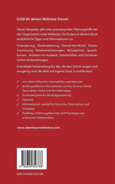 Dieser Ratgeber gibt eine praxiserprobte Planungshilfe bei der Organisation einer Weltreise. In diesem Buch finden sich ausführliche Tipps und Informationen zu Finanzierung, Routenplanung, Flugtickets, Transport, Ausrüstung, Versicherungen, Reisepartner, Sprachkursen, Arbeiten im Ausland, Kommunikation unterwegs, Unterkünften sowie für den bürokratischen Ablauf daheim. Zusätzlich werden länderspezifische Informationen zu Visa, Einreise, Klima, Gesundheit, Preise und Verhaltenstipps gegeben. Kostenbeispiele für die Budgetplanung, eine Packliste sowie Farbfotos mit Erfahrungsberichten von ehemaligen Globetrottern geben Anhaltspunkte für die eigene Planung. Die Informationen in diesem Ratgeber gelten speziell für Deutsche, Schweizer und Österreicher. Eine ideale Vorbereitung für alle, die den Schritt wagen und neugierig genug sind, die Welt auf eigene Faust zu entdecken!