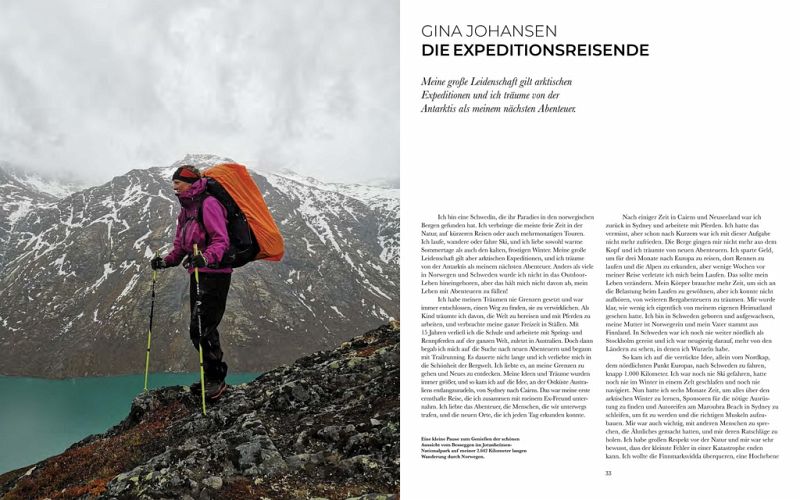 Atemberaubende Fotos zeigen ihre weltweiten Abenteuer auf Schweizer Alpenpässen, unter dem Sternenhimmel Hawaiis, auf den Lavafeldern Islands, tief im Dschungel Guyanas, in den Unterwasserhöhlen Mexikos oder unter den Mammutbäumen Kaliforniens. Ihre faszinierenden Geschichten machen Mut, den eigenen Träumen zu folgen - wohin sie auch führen mögen.