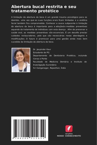 A limitação da abertura da boca é um grande trauma psicológico para os doentes, uma vez que as suas funções orais ficam limitadas e a estética facial também fica comprometida. Conhecer a causa subjacente à limitação da abertura da boca é importante para a adoçãode medidas preventivas aquando do tratamento de indivíduos com esta doença . Afim de preservar a saúde oral, as medidas preventivas são essenciais. É um desafio prestar cuidados restauradores, pelo que são necessárias novas abordagens e modificações. O futuro é promissor para uma gestão ainda mais bem sucedida da limitação da abertura da boca.