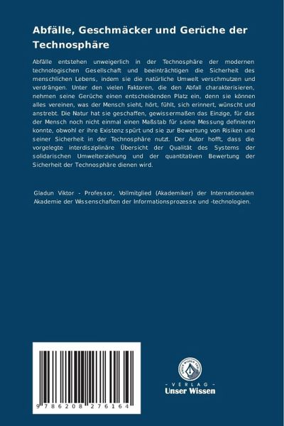 Abfälle entstehen unweigerlich in der Technosphäre der modernen technologischen Gesellschaft und beeinträchtigen die Sicherheit des menschlichen Lebens, indem sie die natürliche Umwelt verschmutzen und verdrängen. Unter den vielen Faktoren, die den Abfall charakterisieren, nehmen seine Gerüche einen entscheidenden Platz ein, denn sie können alles vereinen, was der Mensch sieht, hört, fühlt, sich erinnert, wünscht und anstrebt. Die Natur hat sie geschaffen, gewissermaßen das Einzige, für das der Mensch noch nicht einmal einen Maßstab für seine Messung definieren konnte, obwohl er ihre Existenz spürt und sie zur Bewertung von Risiken und seiner Sicherheit in der Technosphäre nutzt. Der Autor hofft, dass die vorgelegte interdisziplinäre Übersicht der Qualität des Systems der solidarischen Umwelterziehung und der quantitativen Bewertung der Sicherheit der Technosphäre dienen wird.
