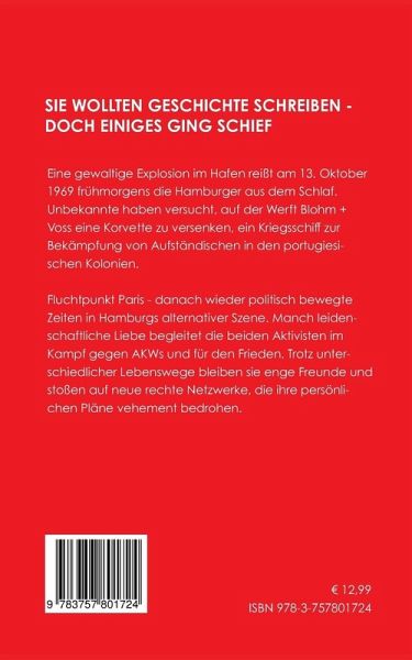 Eine gewaltige Explosion im Hafen reißt am 13. Oktober 1969 frühmorgens die Hamburger aus dem Schlaf. Unbekannte haben versucht, auf der Werft Blohm + Voss eine Korvette zu versenken, ein Kriegsschiff zur Bekämpfung von Aufständischen in den portugiesischen Kolonien. Fluchtpunkt Paris - danach wieder politisch bewegte Zeiten in Hamburgs alternativer Szene. Manch leidenschaftliche Liebe begleitet die beiden Aktivisten im Kampf gegen AKWs und für den Frieden. Trotz unterschiedlicher Lebenswege bleiben sie enge Freunde und stoßen auf neue rechte Netzwerke, die ihre persönlichen Pläne vehement bedrohen.