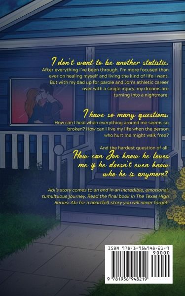I don't want to be another statistic. After everything I've been through, I'm more focused than ever on healing myself and living the kind of life I want. But with my dad up for parole and Jon's athletic career over with a single injury, my dreams are turning into a nightmare. I have so many questions. How can I heal when everything around me seems so broken? How can I live my life when the person who hurt me might walk free? And the hardest question of all: How can Jon know he loves me if he doesn't even know who he is anymore? Abi's story comes to an end in an incredible, emotional, tumultuous journey. Read the final book in The Texas High Series: Abi for a heartfelt story you will never forget.