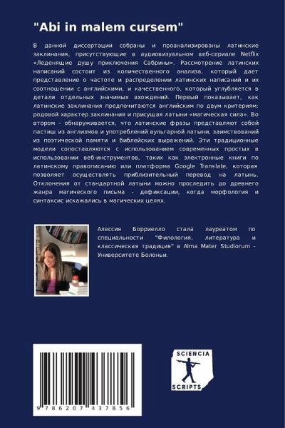V dannoj dissertacii sobrany i proanalizirowany latinskie zaklinaniq, prisutstwuüschie w audiowizual'nom web-seriale Netflix «Ledenqschie dushu priklücheniq Sabriny». Rassmotrenie latinskih napisanij sostoit iz kolichestwennogo analiza, kotoryj daet predstawlenie o chastote i raspredelenii latinskih napisanij i ih sootnoshenii s anglijskimi, i kachestwennogo, kotoryj uglublqetsq w detali otdel'nyh znachimyh whozhdenij. Perwyj pokazywaet, kak latinskie zaklinaniq predpochitaütsq anglijskim po dwum kriteriqm: rodowoj harakter zaklinaniq i prisuschaq latyni «magicheskaq sila». Vo wtorom - obnaruzhiwaetsq, chto latinskie frazy predstawlqüt soboj pastish iz anglizmow i upotreblenij wul'garnoj latyni, zaimstwowanij iz poäticheskoj pamqti i biblejskih wyrazhenij. Jeti tradicionnye modeli sopostawlqütsq s ispol'zowaniem sowremennyh prostyh w ispol'zowanii web-instrumentow, takih kak älektronnye knigi po latinskomu prawopisaniü ili platforma Google Translate, kotoraq pozwolqet osuschestwlqt' priblizitel'nyj perewod na latyn'. Otkloneniq ot standartnoj latyni mozhno prosledit' do drewnego zhanra magicheskogo pis'ma - defixacii, kogda morfologiq i sintaxis iskazhalis' w magicheskih celqh.