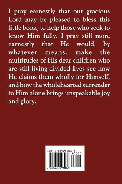 I pray earnestly that our gracious Lord may be pleased to bless this little book, to help those who seek to know Him fully. I pray still more earnestly that He would, by whatever means, make the multitudes of His dear children who are still living divided lives see how He claims them wholly for Himself, and how the wholehearted surrender to Him alone brings unspeakable joy and glory.