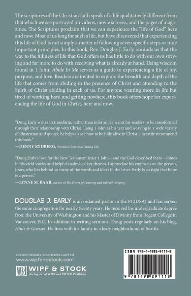 The scriptures of the Christian faith speak of a life qualitatively different from that which we see portrayed on videos, movie screens, and the pages of magazines. The Scriptures proclaim that we can experience the ""life of God"" here and now. Most of us long for such a life, but have discovered that experiencing this life of God is not simply a matter of following seven specific steps or nine important principles. In this book, Rev. Douglas J. Early reminds us that the way to the fullness of life that God offers us has little to do with our own striving and far more to do with receiving what is already at hand. Using wisdom found in 1 John, Abide In Me serves as a guide to experiencing a life of joy, purpose, and love. Readers are invited to explore the breadth and depth of the life that comes from abiding in the presence of Christ and attending to the Spirit of Christ abiding in each of us. For anyone wanting more in life but tired of working hard and getting nowhere, this book offers hope for experiencing the life of God in Christ, here and now.
