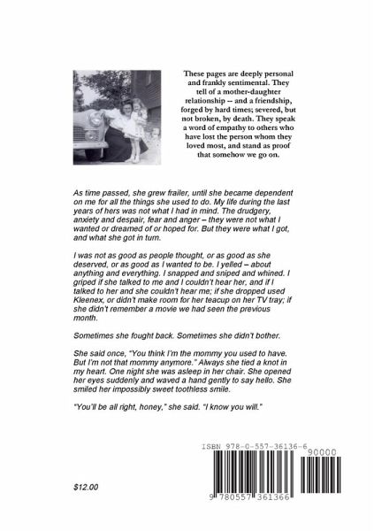 These pages are deeply personal and frankly sentimental. They tell of a mother-daughter relationship -- and a friendship, forged by hard times; severed, but not broken, by death. They speak a word of empathy to others who have lost the person whom they loved most, and stand as proof that somehow we go on.
