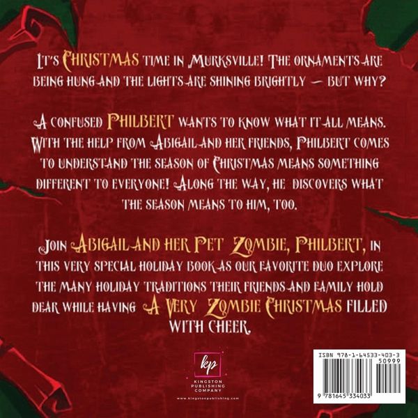 It's Christmas time in Murksville! The ornaments are being hung and the lights are shining brightly - but why? A confused Philbert wants to know what it all means. With the help from Abigail and her friends, Philbert comes to understand the season of Christmas means something different to everyone! Along the way, he discovers what the season means to him, too. Join Abigail and her pet zombie, Philbert, in this very special holiday book as our favorite duo explore the many holiday traditions their friends and family hold dear while having a very zombie Christmas filled with cheer.