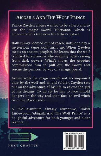 Prince Zayden always wanted to be a hero and to use the magic sword, Neerwana, which is embedded in a tree near his father's palace. Both things seemed out of reach, until one day a mysterious tame wolf turns up. When Zayden meets an ancient prophet, he learns that the wolf is linked to a princess who urgently needs saving from dark powers. What's more, the prophet commissions him to pull out the sword and rescue the princess by way of a magic portal. Armed with the magic sword and accompanied only by the wolf and an old soldier, Zayden sets out on the adventure of his life to rescue the girl of his dreams. To do so, he has to face untold dangers on the way and then face an evil witch from the Dark Lands. A thrill-a-minute fantasy adventure, David Littlewood's 'Abigaila And The Wolf Prince' is a delightful adventure for both younger and older readers.