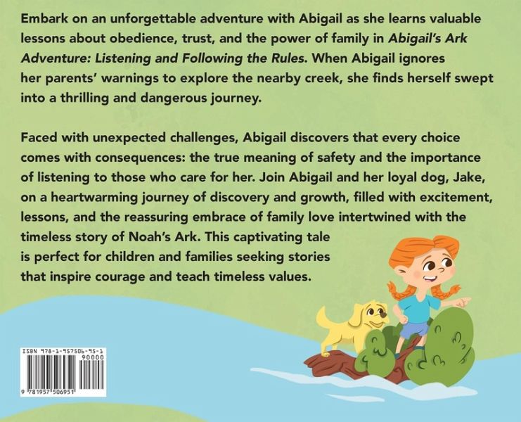 Join Abigail on a Big Adventure-Filled with Fun, Faith, and Important Life Lessons! When Abigail disobeys her parents and explores the creek, she quickly finds herself in unexpected danger. Swept into a thrilling adventure with her loyal dog, Jake, she learns that every choice has consequences-and that listening to those who care for us keeps us safe. Through excitement, challenges, and faith-filled moments, Abigail discovers the power of trust, obedience, and family love. Inspired by the timeless story of Noah's Ark, this heartwarming tale helps children understand why rules matter and how God's guidance protects us. What Kids & Parents Will Learn: ¿¿ The importance of listening and following instructions. ¿¿ How choices lead to consequences-good or bad. ¿¿ The value of trust, faith, and family support. ¿¿ How biblical stories connect to everyday life. Bonus Learning Resources Included! At the back of the book, you'll find conversation guides and learning prompts to help families and educators deepen the discussion and make these lessons part of everyday life. Start your adventure today-read, learn, and grow with Abigail and Jake!