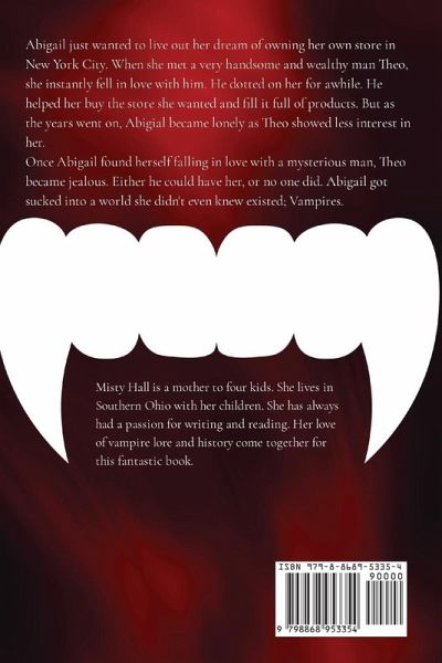 Abigail Nicole Baker grew up in upstate New York in the countryside. She didn't have the greatest childhood or parents that loved her, but she had a best friend and their family become her own. But at the age of 18, Abigail left the countryside after a traumatic event and never looked back. She worked multiple jobs to save every dime she had to open up her own business. Eventually, Abigail met Theodore Allen Kingston, a very wealthy man. He dotted on Abigail for the first few months, but after that, he acted as though she was an inconvenience for him for most of the time. Abigail ignored it, she got what she wanted, he had helped her with buying a store front and supplying it. Once the store took off with the tourist of New York City. They ate the stuff up that she sold. She didn't really need Theo anymore, but the company was nice sometimes. After a few years, Abigail met a mysterious man that wandered into her shop one night. Nicholas Alexander Thorne. He made her feel a way she had never felt before. She desired him more than she had any man before. She wasn't sure what it was about him, but she wanted to know him, to have him. But once Theo realized Abigail was falling for someone else, he declared her to be his and only his and no one else was allowed to have her. He would kill her if he had to, to keep her from being with anyone else. Abigail was torn between the two men. She realized she didn't really love Theo, but she feared the man. But loved Nicholas and she wanted to only be with him. Abigail found herself caught in between a world that she didn't even know existed. Vampires. She didn't know the two men in her life were apart of it and she was about to find out.