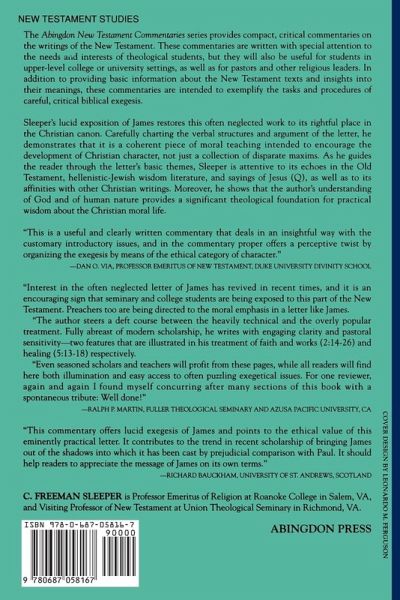 Sleeper's lucid exposition of James restores this often neglected work to itsrightful place in the Christian canon. Carefully charting the verbal structures andargument of the letter, he demonstrates that it is a coherent piece of moralteaching intended to encourage the development of Christian character, not just acollection of disparate maxims. As he guides the reader through the letter's basicthemes, Sleeper is attentive to its echoes in the Old Testament, Hellenistic Jewishwisdom literature, and sayings of Jesus, as well as to its affinities with otherChristian writings. Moreover, he shows that the author's understanding of God and ofhuman nature provides a significant theological foundation for practical wisdomabout the Christain moral life.
