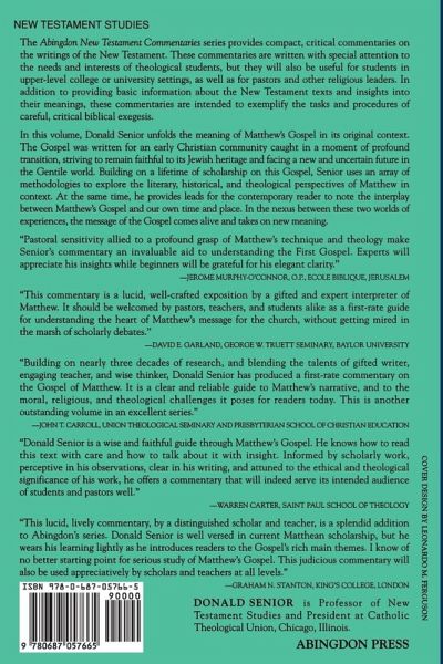 The Abingdon New Testament Commentaries series offers compact, critical commentaries on the writings of the New Testament. These commentaries are written with special attention to the needs and interests of theology students, but they will also be useful for students in upper-level college or university settings, as well as for pastors and other church leaders. In addition to providing basic information about the New Testament texts and insights into their meanings, these commentaries exemplify the tasks and procedures of careful, critical exegesis.