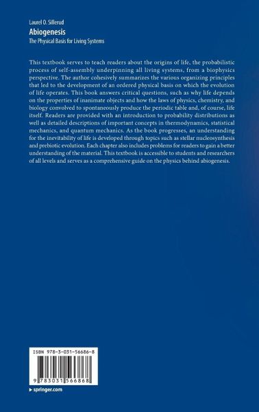 This textbook serves to teach readers about the origins of life, the probabilistic process of self-assembly underpinning all living systems, from a biophysics perspective. The author cohesively summarizes the various organizing principles that led to the development of an ordered physical basis on which the evolution of life operates. This book answers critical questions, such as why life depends on the properties of inanimate objects and how the laws of physics, chemistry, and biology convolved to spontaneously produce the periodic table and, of course, life itself. Readers are provided with an introduction to probability distributions as well as detailed descriptions of important concepts in thermodynamics, statistical mechanics, and quantum mechanics. As the book progresses, an understanding for the inevitability of life is developed through topics such as stellar nucleosynthesis and prebiotic evolution. Each chapter also includes problems for readers to gain a better understanding of the material. This textbook is accessible to students and researchers of all levels and serves as a comprehensive guide on the physics behind abiogenesis.