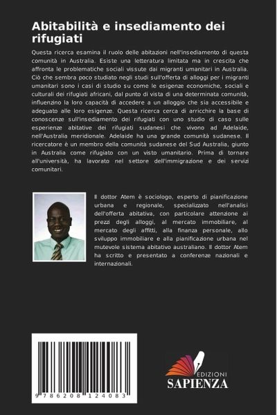 Questa ricerca esamina il ruolo delle abitazioni nell'insediamento di questa comunità in Australia. Esiste una letteratura limitata ma in crescita che affronta le problematiche sociali vissute dai migranti umanitari in Australia. Ciò che sembra poco studiato negli studi sull'offerta di alloggi per i migranti umanitari sono i casi di studio su come le esigenze economiche, sociali e culturali dei rifugiati africani, dal punto di vista di una determinata comunità, influenzino la loro capacità di accedere a un alloggio che sia accessibile e adeguato alle loro esigenze. Questa ricerca cerca di arricchire la base di conoscenze sull'insediamento dei rifugiati con uno studio di caso sulle esperienze abitative dei rifugiati sudanesi che vivono ad Adelaide, nell'Australia meridionale. Adelaide ha una grande comunità sudanese. Il ricercatore è un membro della comunità sudanese del Sud Australia, giunto in Australia come rifugiato con un visto umanitario. Prima di tornare all'università, ha lavorato nel settore dell'immigrazione e dei servizi comunitari.