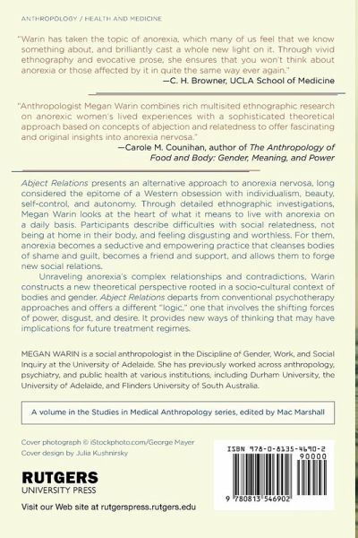 Abject Relations presents an alternative approach to anorexia, through detailed ethnographic investigations. Megan Warin looks at the heart of what it means to live with anorexia on a daily basis. Unraveling anorexia's complex relationships and contradictions, Warin provides a new theoretical perspective rooted in a socio-cultural context of bodies and gender. "Abject Relations" departs from conventional psychotherapy approaches and offers a different "logic," one that involves the shifting forces of power, disgust, and desire.