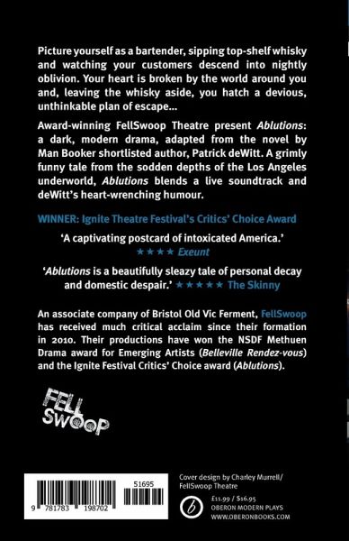 Picture yourself as a bartender, sipping top-shelf whiskey and watching your customers descend into nightly oblivion. Your heart is broken by the world around you and, leaving the whisky aside, you hatch a devious, unthinkable plan of escape. Award-winning FellSwoop Theatre present Ablutions:a dark, modern drama, adapted from the novel by Man Booker shortlisted author, Patrick deWitt. A grimly funny tale from the sodden depths of the Los Angeles underworld, Ablutions blends a live soundtrack with detailed mime and deWitt's heart-wrenching humour.
