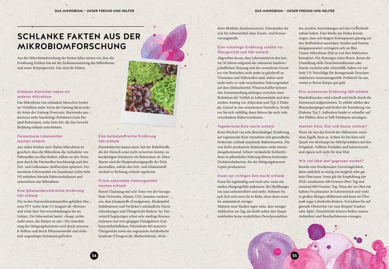 Neben Funktion und Aufbau des Darms und des Mikrobioms zeigt Ihnen dieses Buch, was Sie zu welcher Zeit essen sollten, um optimale Voraussetzungen für Ihre Darmbakterien zu schaffen. Außerdem erfahren Sie, wie Sie Ihrem Darm zum Beispiel mit Probiotika noch mehr Gutes tun können. Eine umfassende Sammlung darmfreundlicher Rezepte lädt Sie dazu ein, Ihr Mikrobiom im Alltag zu verwöhnen.