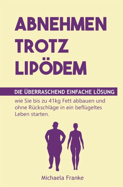 Lipödem-Betroffene verrät: Wie Sie endlich schaffen können, trotz Lipödem bis zu 41kg abzunehmen (ohne frustrierende Rückschläge oder Hunger)!Haben Sie beim Versuch, abzunehmen, bisher nur Frust, Rückschläge und das Gefühl erlebt, dass es unmöglich ist?Die befreiende Antwort lautet: Sie können trotz Lipödem abnehmen! Dieses Buch liefert Ihnen alle wichtigen Informationen, wie Sie den Zugang zu Ihren Fettspeichern freilegen und bis zu 15, 25 oder 41kg wie durch ein Wunder Schritt für Schritt innerhalb 12 Monaten abbauen können.Besonders wichtig: Bei dieser Methode nehmen Sie nicht nur ab, sondern verbessern darüber hinaus Ihr Körpergefühl - für ein selbstbestimmtes und glückliches Leben!Das erprobte Erfolgsgeheimnis von über 120 Frauen liegt in der ganzheitlichen 3-Säulen-Lösung. Erfahren Sie unter anderem:- Wie Sie mit Genuss normale Mengen essen, Hungerattacken vermeiden und trotzdem abnehmen.- 3 Schritte-Fahrplan, wie Sie Disziplin & Durchhaltevermögen aufbauen.- Mit welchen Sportarten bei Lipödem Sie den Fettstoffwechsel anregen und Ihre Lymphe in Fluss bringenKaufen Sie dieses Buch jetzt und starten Sie durchs Abnehmen in ein beflügeltes Leben! Es funktioniert!