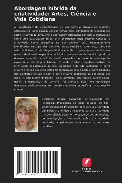 A investigação da especificidade de um domínio através de modelos estruturais é, sem dúvida, um dos temas mais inovadores da investigação sobre criatividade. Enquanto a abordagem dominante concebe a criatividade como uma capacidade geral, uma abordagem mais recente concebe a criatividade como específica de um domínio. São frequentemente identificados três grandes domínios de expressão criativa: arte, ciência e vida quotidiana. A abordagem híbrida concilia os paradigmas de domínio geral e de domínio específico, incluindo caraterísticas de domínio geral, de domínio específico e até de tarefa específica. A presente investigação explorou a abordagem híbrida. O perfil criativo cognitivo-conativo foi investigado nos domínios da arte, da ciência e da vida quotidiana. O perfil criativo artístico dos arquitectos foi comparado com o perfil criativo científico dos cientistas sociais e com o perfil criativo quotidiano da população em geral. A abordagem diferencial da criatividade, que integra caraterísticas gerais e específicas do domínio, foi apoiada. Este livro estabelece diferentes perfis criativos em relação a domínios específicos da expressão criativa.