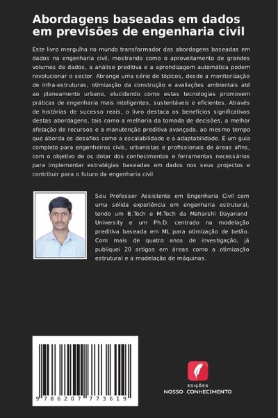 Este livro mergulha no mundo transformador das abordagens baseadas em dados na engenharia civil, mostrando como o aproveitamento de grandes volumes de dados, a análise preditiva e a aprendizagem automática podem revolucionar o sector. Abrange uma série de tópicos, desde a monitorização de infra-estruturas, otimização da construção e avaliações ambientais até ao planeamento urbano, elucidando como estas tecnologias promovem práticas de engenharia mais inteligentes, sustentáveis e eficientes. Através de histórias de sucesso reais, o livro destaca os benefícios significativos destas abordagens, tais como a melhoria da tomada de decisões, a melhor afetação de recursos e a manutenção preditiva avançada, ao mesmo tempo que aborda os desafios como a escalabilidade e a adaptabilidade. É um guia completo para engenheiros civis, urbanistas e profissionais de áreas afins, com o objetivo de os dotar dos conhecimentos e ferramentas necessários para implementar estratégias baseadas em dados nos seus projectos e contribuir para o futuro da engenharia civil.