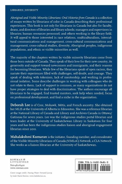 This book, the first of its kind in Canada, is a collection of chapters from Aboriginal and visible minority librarians, working in Canada, speaking about the challenges they face in their profession; their strategies to overcome challenges; the support they have received; their professional fulfillment; and their contributions to the profession.