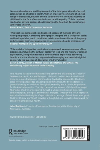 This volume traces the complex reasons behind the disturbing discrepancy between the health and well-being of children in mainstream Australia and those in remote Indigenous communities. Invaluably informed by Boulton's close working knowledge of Aboriginal communities, the book addresses growth faltering as a crisis of Aboriginal parenting and a continued problem for the Australian nation. The high rate and root causes of ill-health amongst Aboriginal children are explored through a unique synthesis of historical, anthropological, biological and medical analyses. Through this fresh approach, which includes the insights of specialists from a range of disciplines, Aboriginal Children, History and Health provides a thoughtful and innovative framework for considering Indigenous health.