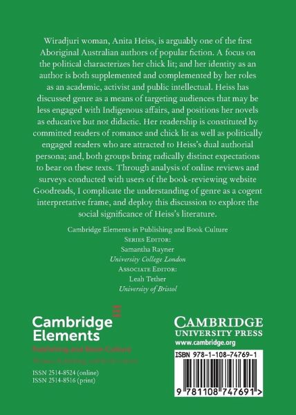 Wiradjuri woman, Anita Heiss, is arguably one of the first Aboriginal Australian authors of popular fiction. In this Element a focus on the political characterises her chick lit; and her identity as an author is both supplemented and complemented by her roles as an academic, activist and public intellectual.