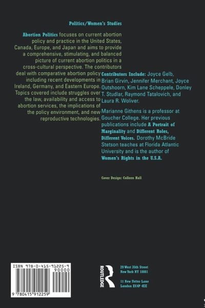 Abortion Politics: Public Policy in Cross Cultural Perspective focuses on current abortion policy and practice in the United States, Canada, Europe and Japan and aims to provide a comprehensive, stimulating and balanced picture of current abortion policy in a cross-cultural perspective. The contributors deal with comparative abortion policy including recent developments in Ireland, Germany and Eastern Europe.