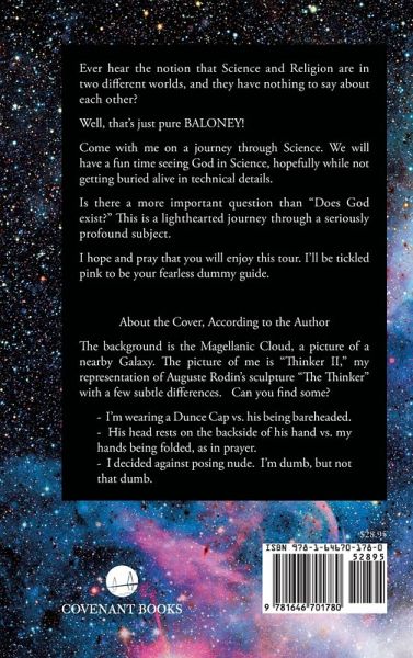 Ever hear the notion that Science and Religion are in two different worlds, and they have nothing to say about each other? Well, that's just pure BALONEY! Come with me on a journey through Science. We will have a fun time seeing God in Science, hopefully while not getting buried alive in technical details. Is there a more important question than "Does God exist?" This is a lighthearted journey through a seriously profound subject. I hope and pray that you will enjoy this tour. I'll be tickled pink to be your fearless dummy guide.