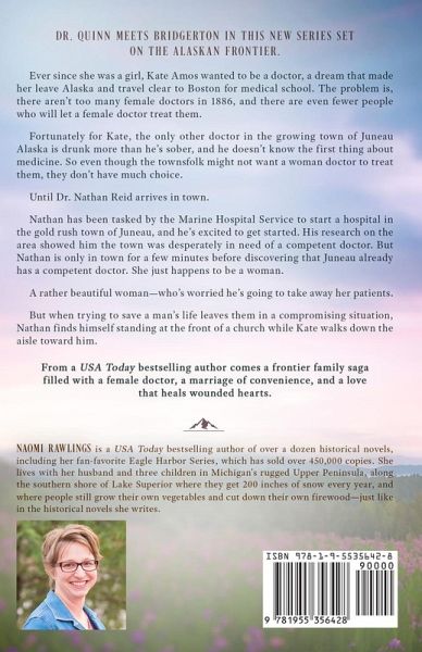 Ever since she was a girl, Kate Amos wanted to be a doctor, a dream that made her leave Alaska and travel clear to Boston for medical school. The problem is, there aren't too many female doctors in 1886, and there are even fewer people who will let a female doctor treat them. Fortunately for Kate, the only other doctor in the growing town of Juneau Alaska is drunk more than he's sober, and he doesn't know the first thing about medicine. So even though the townsfolk might not want a woman doctor to treat them, they don't have much choice Until Dr. Nathan Reid arrives in town. Nathan has been tasked by the Marine Hospital Service to start a hospital in the gold rush town of Juneau, and he's excited to get started. His research on the area showed him the town was desperately in need of a competent doctor. But Nathan is only in town for a few minutes before discovering that Juneau already has a competent doctor. She just happens to be a woman. A rather beautiful woman-who's worried he's going to take away her patients. But when trying to save a man's life leaves them in a compromising situation, Nathan finds himself standing at the front of a church while Kate walks down the aisle toward him. From a USA Today bestselling author comes a frontier family saga filled with a female doctor, a marriage of convenience, and a love that heals wounded hearts.