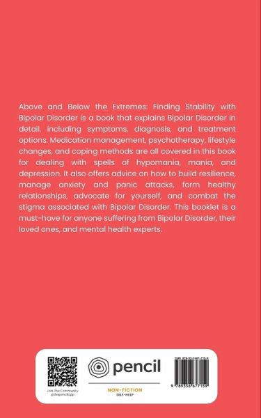 Above and Below the Extremes: Finding Stability with Bipolar Disorder is a book that explains Bipolar Disorder in detail, including symptoms, diagnosis, and treatment options. Medication management, psychotherapy, lifestyle changes, and coping methods are all covered in this book for dealing with spells of hypomania, mania, and depression. It also offers advice on how to build resilience, manage anxiety and panic attacks, form healthy relationships, advocate for yourself, and combat the stigma associated with Bipolar Disorder. This booklet is a must-have for anyone suffering from Bipolar Disorder, their loved ones, and mental health experts.
