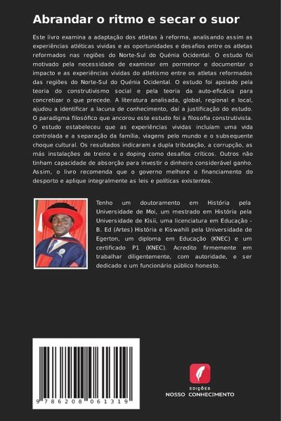 Este livro examina a adaptação dos atletas à reforma, analisando assim as experiências atléticas vividas e as oportunidades e desafios entre os atletas reformados nas regiões do Norte-Sul do Quénia Ocidental. O estudo foi motivado pela necessidade de examinar em pormenor e documentar o impacto e as experiências vividas do atletismo entre os atletas reformados das regiões do Norte-Sul do Quénia Ocidental. O estudo foi apoiado pela teoria do construtivismo social e pela teoria da auto-eficácia para concretizar o que precede. A literatura analisada, global, regional e local, ajudou a identificar a lacuna de conhecimento, daí a justificação do estudo. O paradigma filosófico que ancorou este estudo foi a filosofia construtivista. O estudo estabeleceu que as experiências vividas incluíam uma vida controlada e a separação da família, viagens pelo mundo e o subsequente choque cultural. Os resultados indicaram a dupla tributação, a corrupção, as más instalações de treino e o doping como desafios críticos. Outros não tinham capacidade de absorção para investir o dinheiro considerável ganho. Assim, o livro recomenda que o governo melhore o financiamento do desporto e aplique integralmente as leis e políticas existentes.